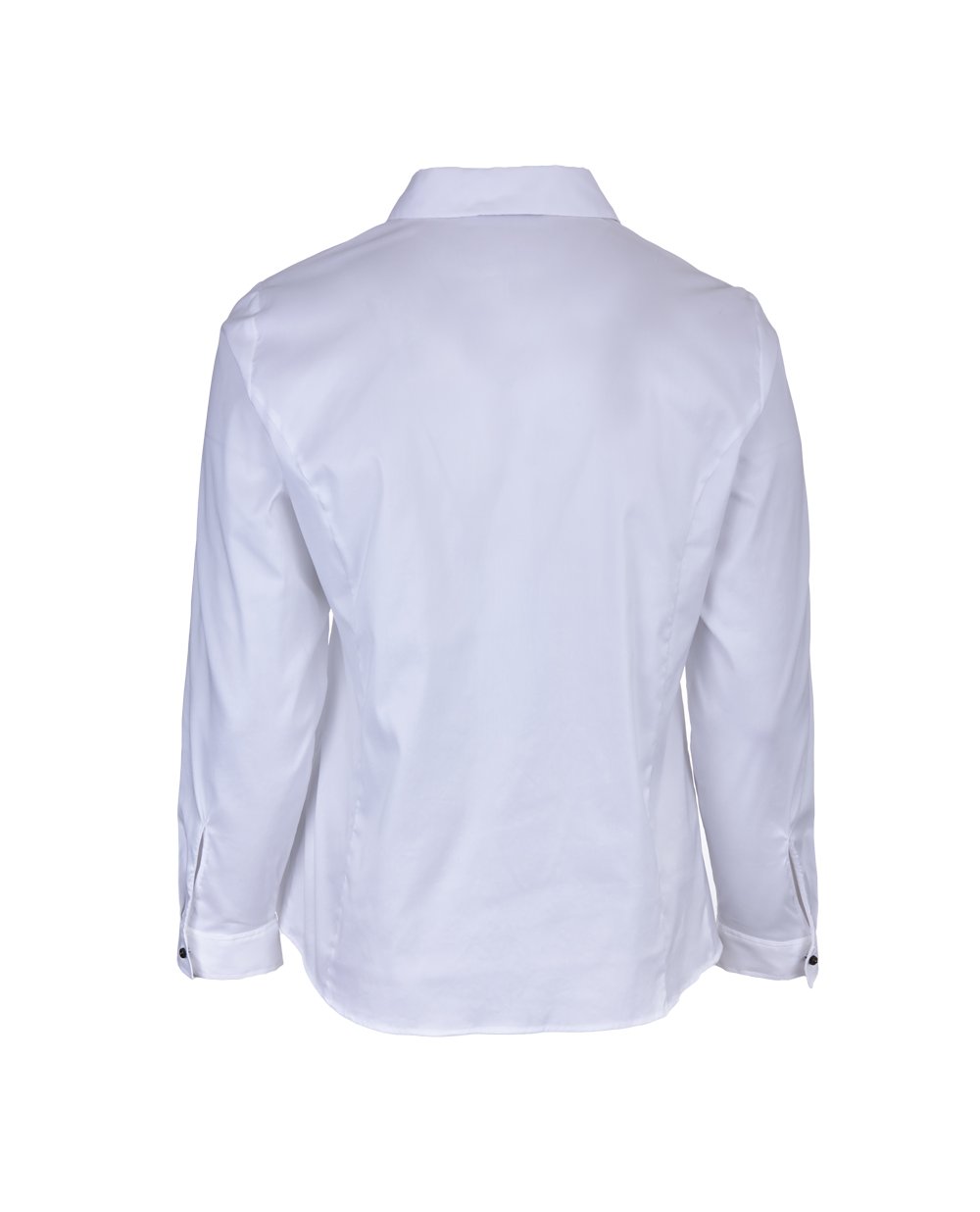 Классическая белая блуза из коллекции Elena Miro. Модель прямого кроя с острым отложным воротником. Застежка на пуговицы разного оформления. Длинные рукава с манжетами на пуговице. Длина блузы в 43 размере - 68 см.