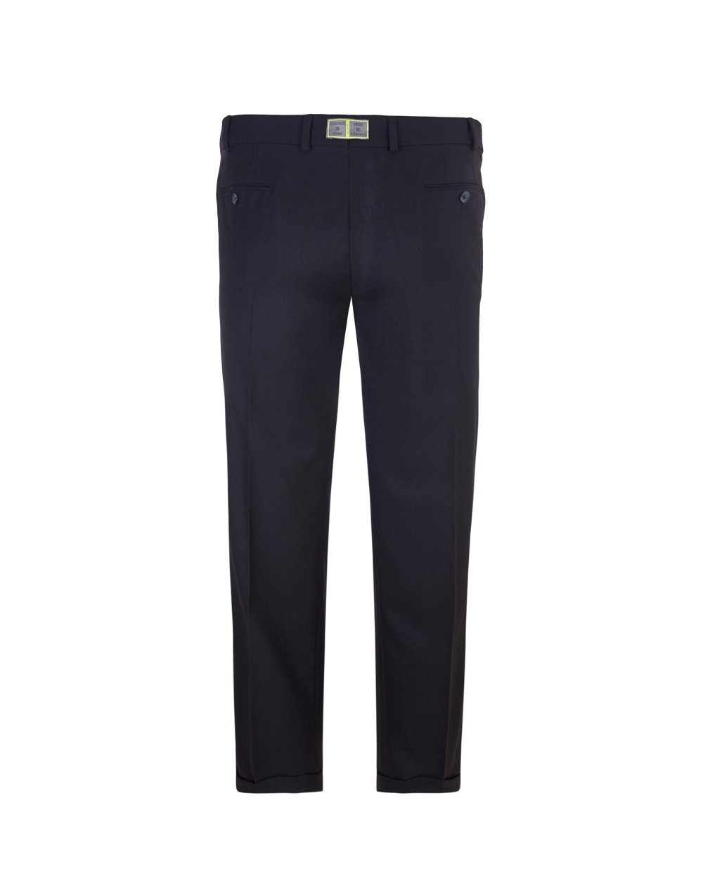 Брюки мужские классические с манжетами внизу, верхний срез обработан притачным поясом, со складками на передних половинках, на обеих задних и передних половинках прорезные карманы в рамку.