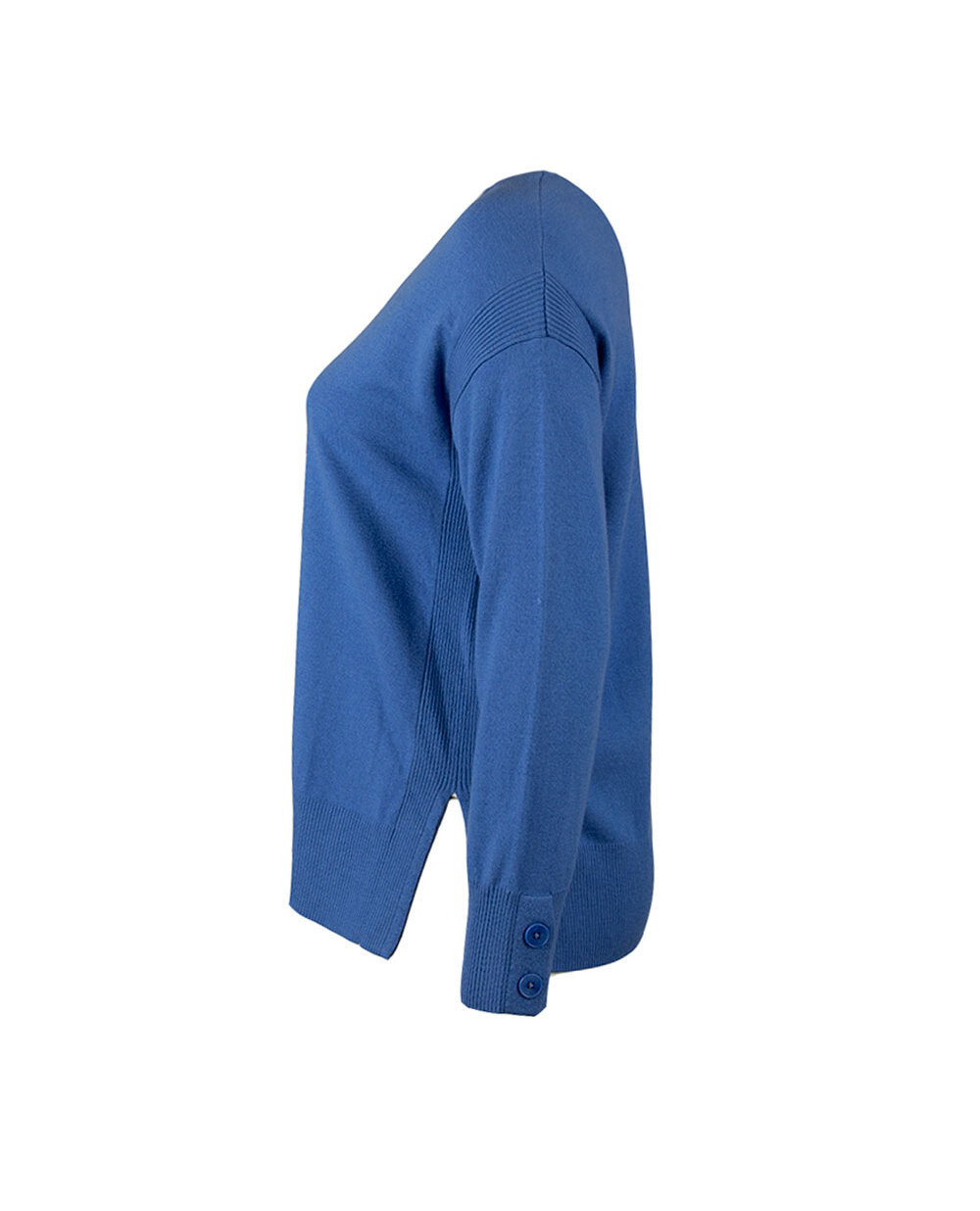 Состав 53% вискоза, 39% шерсть, 16% нейлон, 2% эластан. Джемпер из мягкой вискозы с добавлением шерсти. Свободный силуэт, вырез горловины "лодочка", декорированный широкой отделкой "в рубчик", разрезы по бокам. Манжеты рукава застёгиваются на пуговицы . Изготовлен с применением специального двойного переплетения нити снаружи и глянцевой вискозы внутри, что обеспечивает мягкий, но плотный эффект. В размере XL ( 56 украинский размер) полуобхват груди 59 см.