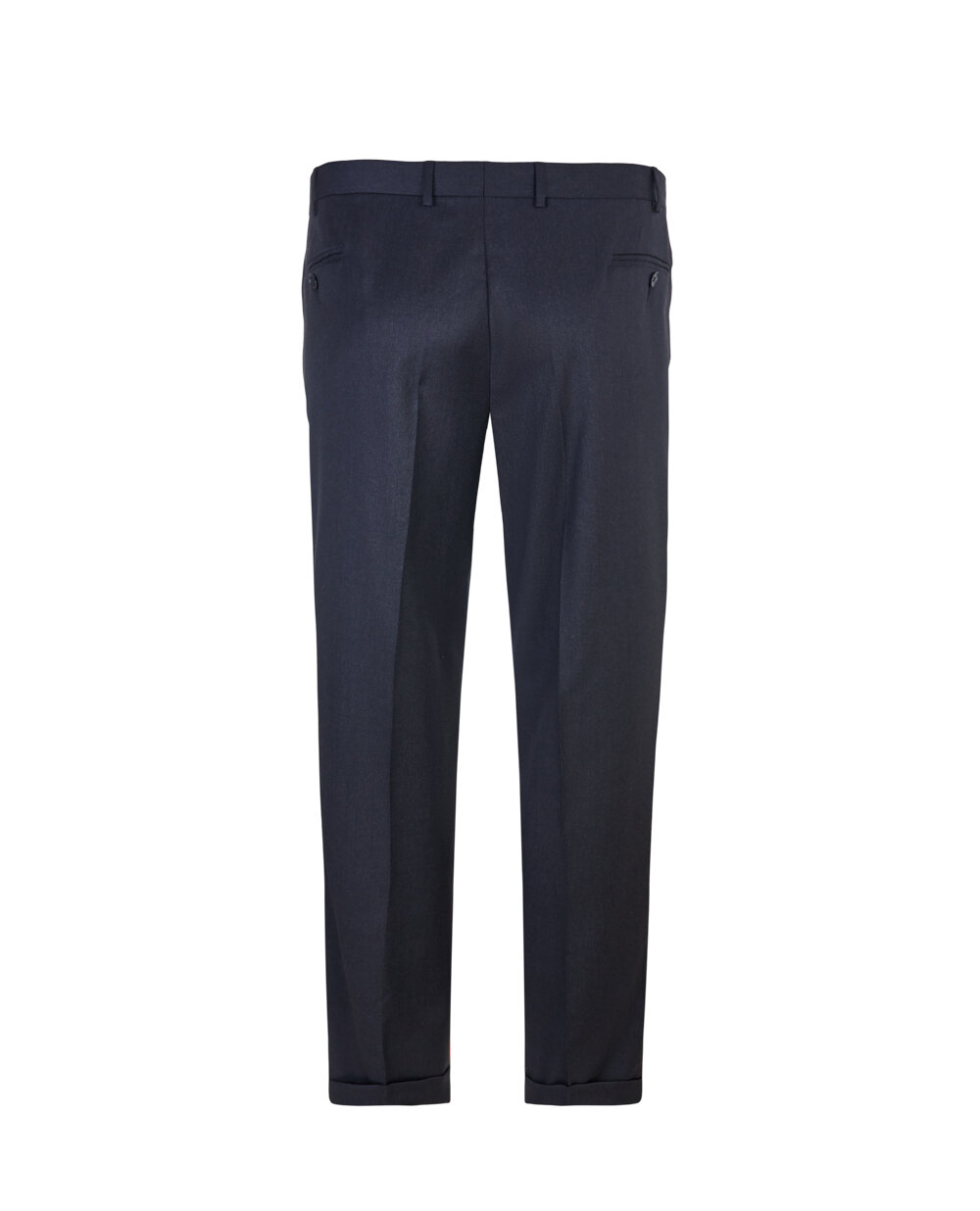 Штани чоловічі класичні з манжетами внизу, верхній зріз оброблений притачним поясом, зі складками на передніх половинках, на обох задніх і передніх половинках прорізні кишені в рамку.